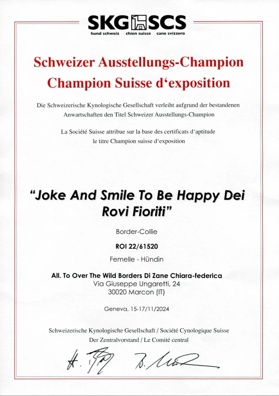 I nostri Joe e Smile tornano a casa entrambi con il nuovo titolo di campioni Svizzeri di esposizione!